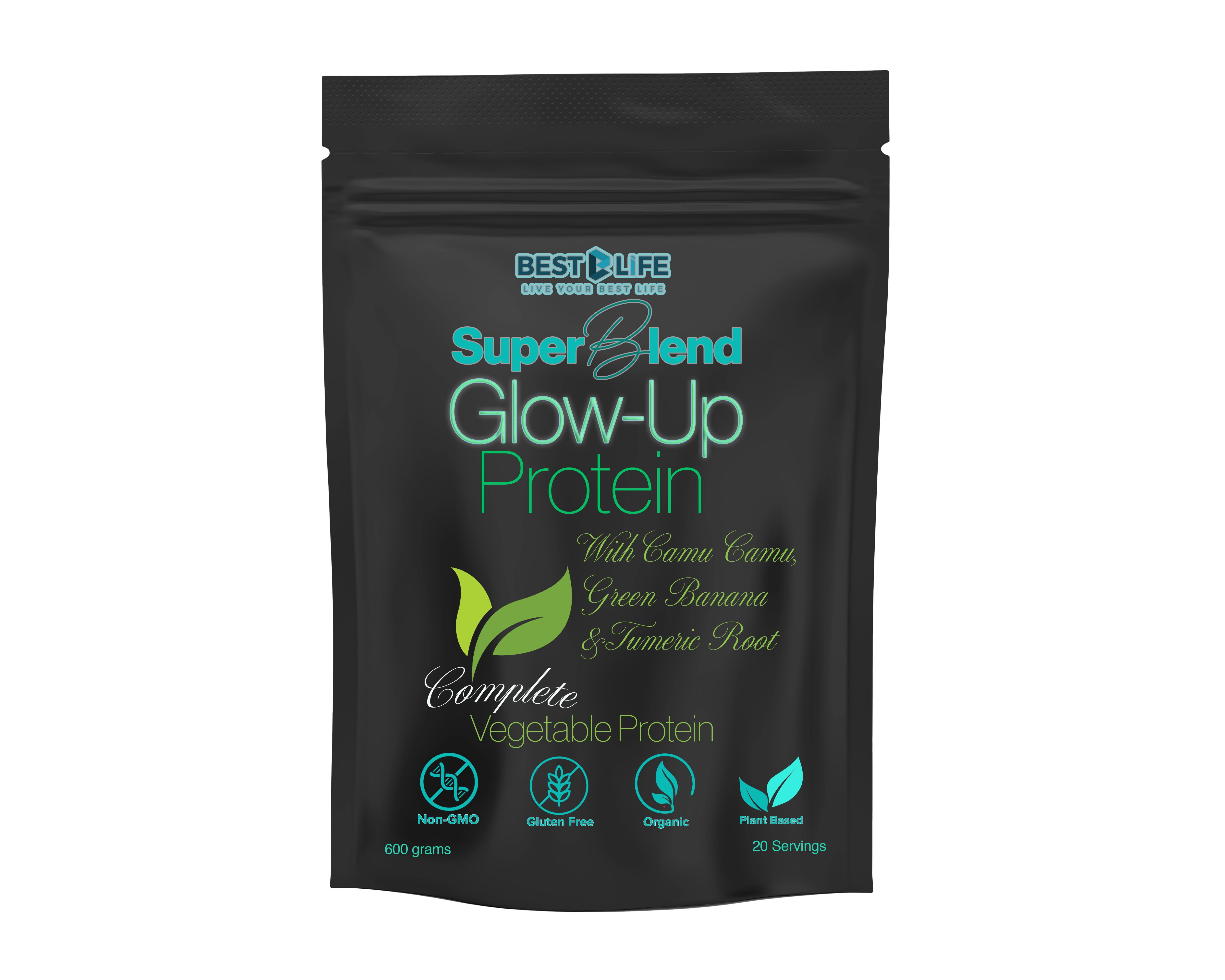 Our Glow-Up vegan protein is a FULL-SPECTRUM protein delivery system delivering all 9 amino Acids, is gentle on the stomach and produces that "INNER GLOW" - with Camu-Camu, Green Banana & Tumeric Root.
