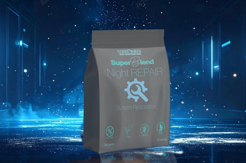 SuperBlend: Night Repair is a targeted formula designed to support muscle and nervous system recovery during sleep. It features micellar casein protein — which digests slowly over 6–8 hours — helping to reduce overnight muscle breakdown and support repair. Enhanced with magnesium glycinate, ashwagandha, L-theanine, and tart cherry, it supports cortisol balance, relaxation, and restorative sleep quality. Free from stimulants and artificial additives, it’s ideal for athletes, active individuals, and anyone seeking deeper recovery as part of a proactive wellness routine.