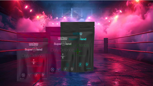 SuperBlend: Daily Defence is a nutrient-dense formula combining alkalising green plants with adaptogenic herbs and medicinal mushroom extracts to support natural resilience, balanced energy, and everyday vitality. It features wheatgrass, barley grass, kale, spinach, ashwagandha, reishi, lion’s mane, tulsi, parsley, chlorella, spirulina, celery leaf, and green tea extract — all selected for their role in supporting stress resilience, immune balance, and cognitive clarity. Designed as a daily foundation for those seeking comprehensive nutritional support without compromise.